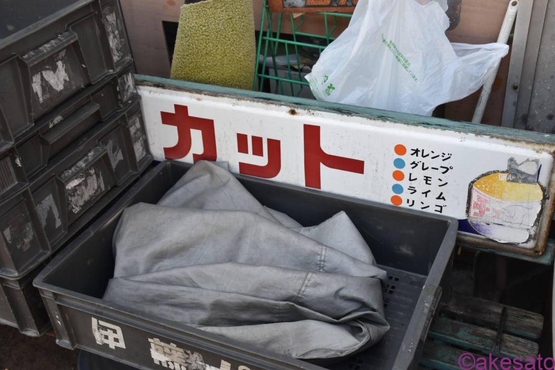 店内は半分が物置になっていて、狭い。お菓子コーナーや乳製品と書いてある棚を見ると、昔は商店みたいなお店だったのかなと思う。