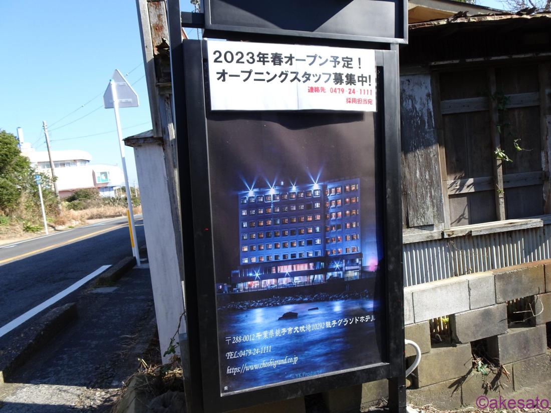 犬吠埼手前の左手のホテルは、銚子最大のホテルだった。「グランドホテル磯屋」として1953年に開業、2012年に閉館後にはしばらく老朽化が目につく状態だったが、2021年に「銚子グランドホテル」として再開業、コロナ禍の休業を経て、2023年5月に再開している。
