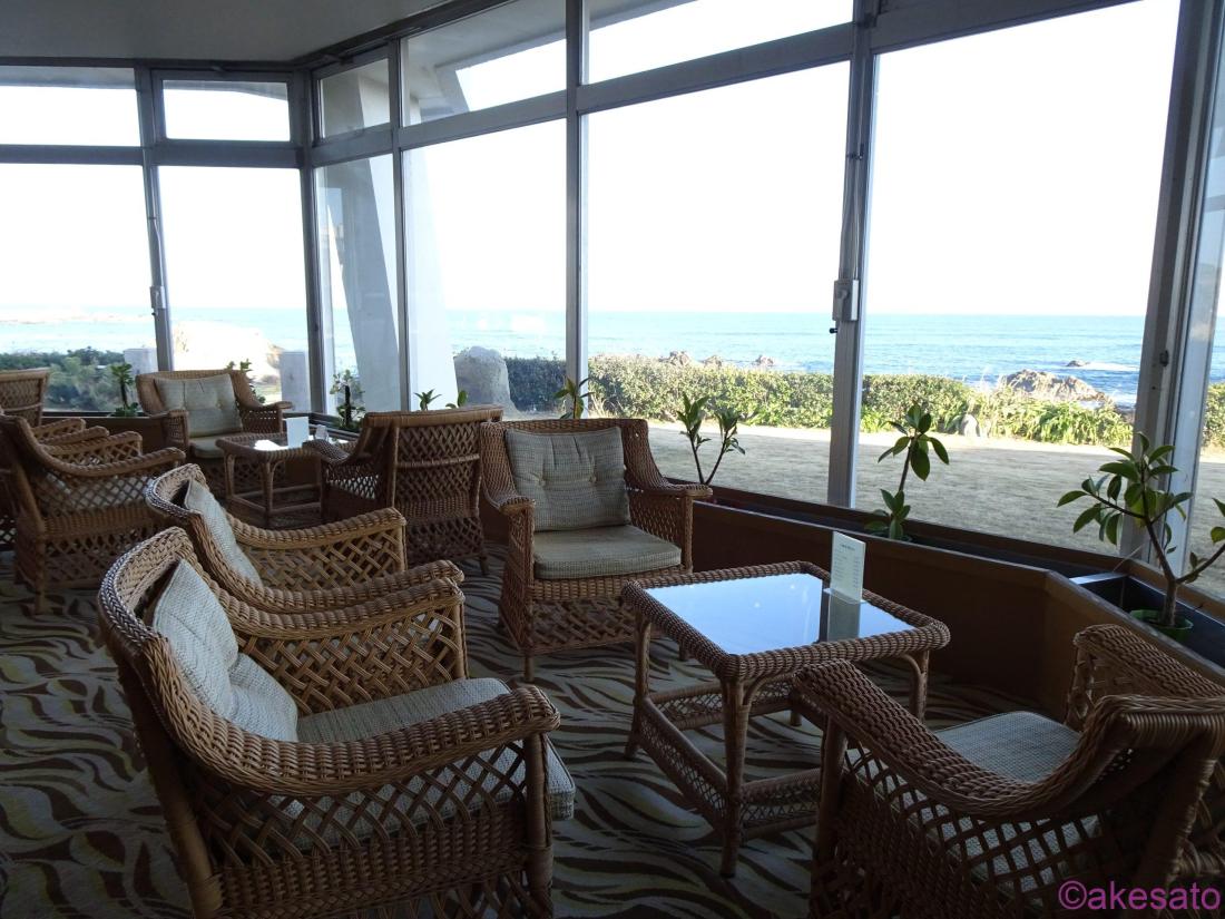 目の前には太平洋が広がる大浴場!風も入ってきて気持ち良い。