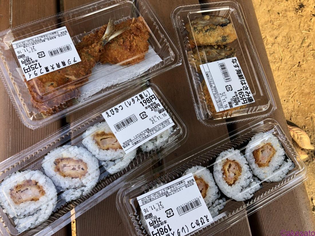 若栄商店街、飲食店がほとんどないのでスーパーで購入。コンコルド若宮店もこういう時に限って定休日だった。公園のベンチで母とランチタイム。