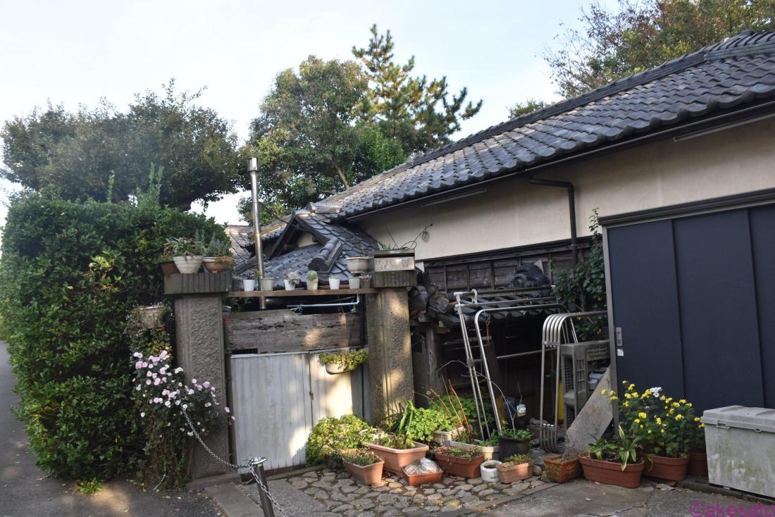 途中、街道から一本裏道に入り「市川市東山魁夷記念館」周辺を彷徨った。この辺りは昔ながらの古風な住宅が残っている。下の民家は門柱が素晴らしい。