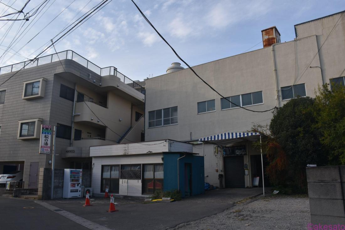 公園から北西方面に少し歩いたところにある銭湯「若宮松乃湯」へ。こちらは裏側。