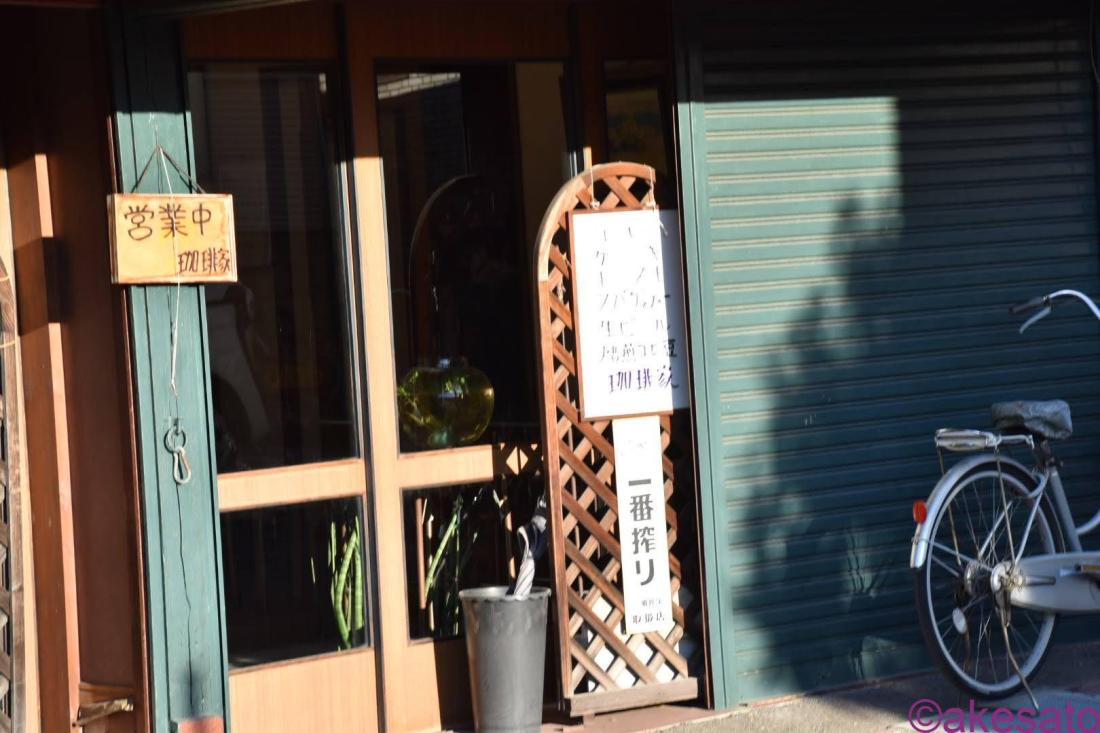 営業中。「自家焙煎 珈琲家」という喫茶店のようだ。メニューは珈琲とケーキなど。