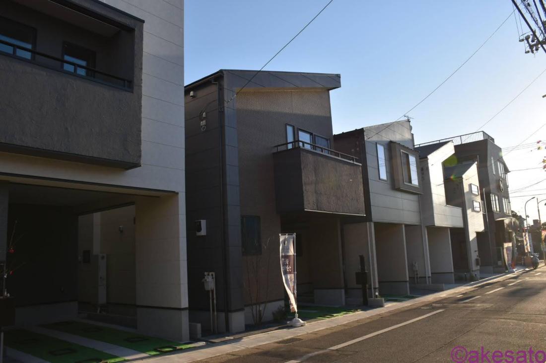 商店街のアーチがなくなり、新しい家が並んでいた。
