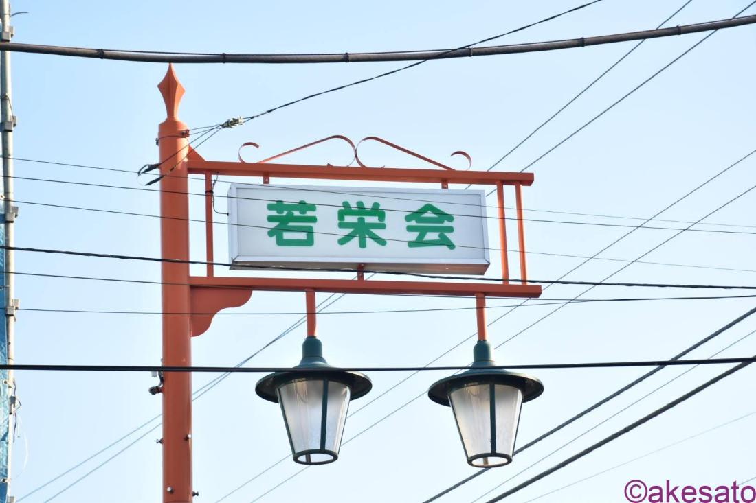 「若栄会」市川市若宮にある商店街である。商店街の存在は、地図を見てわかったが、思ったよりも建物がそのまま残っており、アーチ街灯も発見できて楽しい商店街だった。