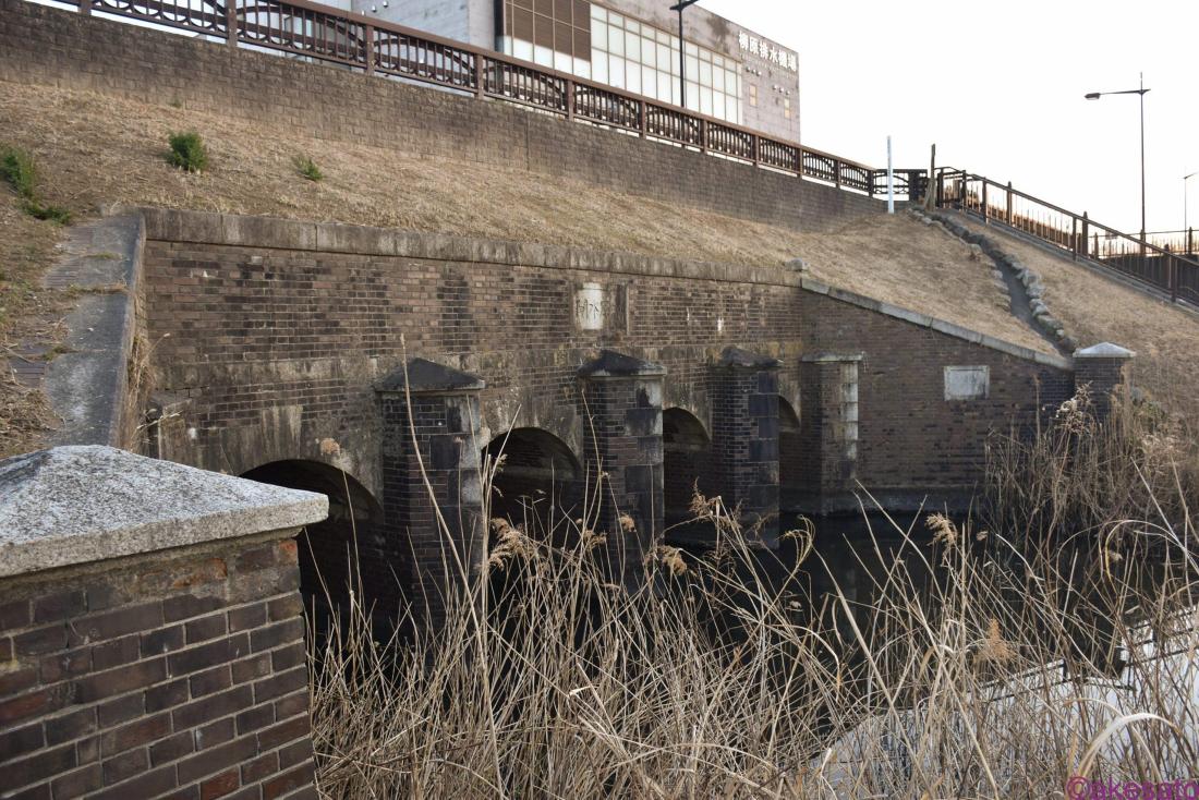 松戸「柳原水閘」明治期のレンガ造りの4連アーチが保存。近代化産業遺産 -矢切⑶