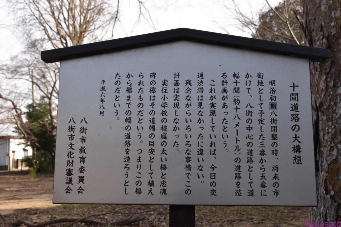 十間道路の看板が置いてあった広場の石碑は忠魂碑で、実は第二次ではなくその前の戦争に出兵した方々の碑であるため非常に歴史あるものとなっております。