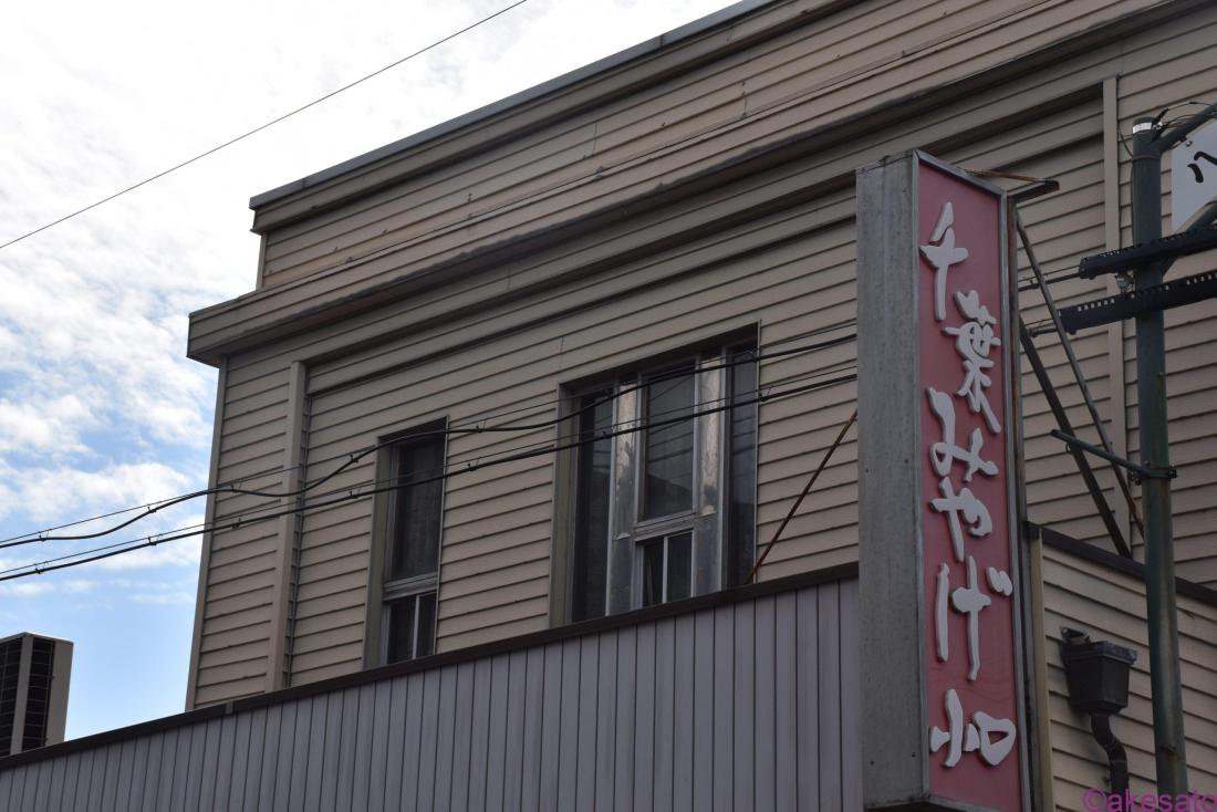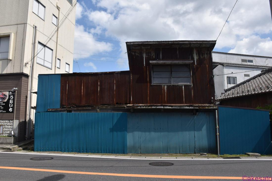 看板建築みたいに表側だけ覆われているが古い建物。元々どんな商売をされていたんだろう。