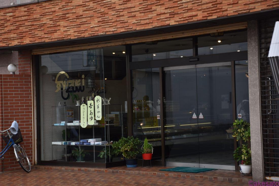 和洋菓子店が向かい合って2店舗。「松月堂本店」と「鈴木和泉」。