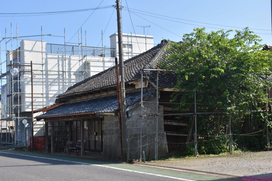 老舗酒屋の建物だが、足場が組んであり、いつまで残っているか…今度訪れたら無いかもしれない。